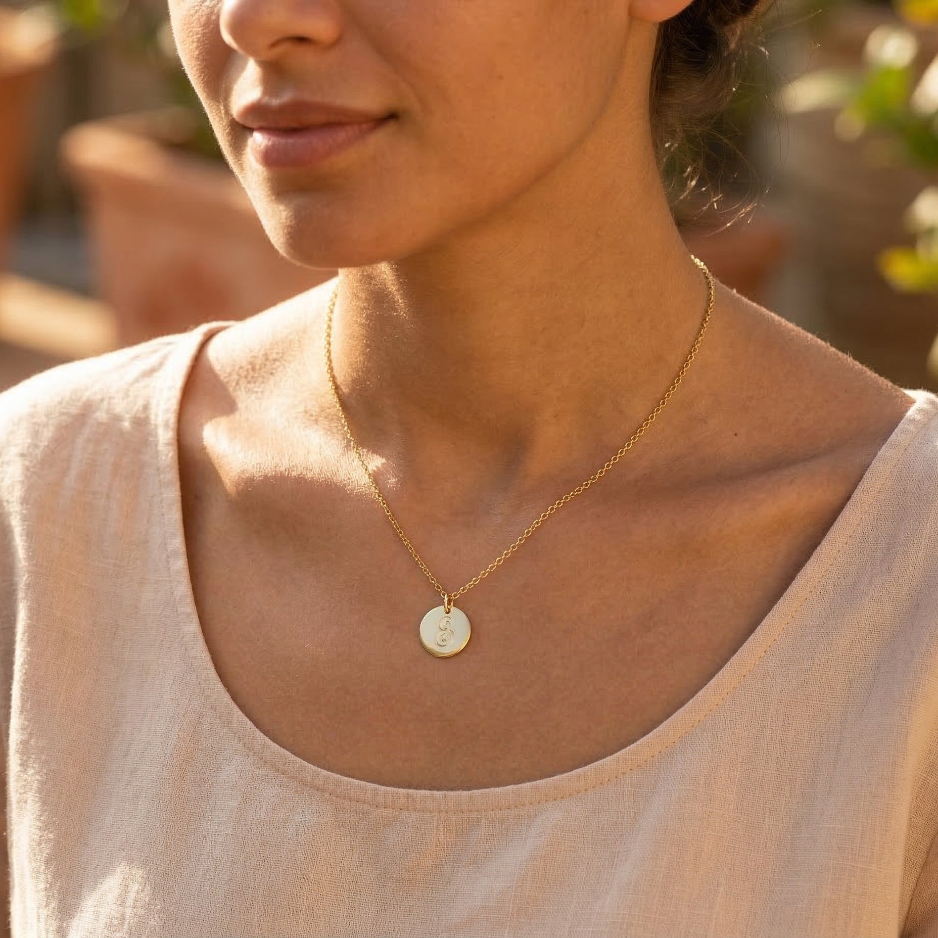 Create a unique necklace with your chosen initials, name, or a special date, perfect for any occasion. This customizable disc pendant can be engraved on both sides for a personal touch.