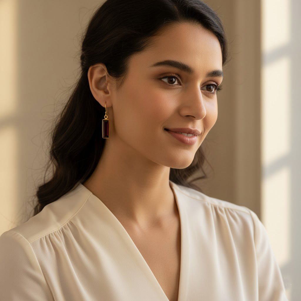 Garnet Bar Earrings : January Birthstone : Adira Series