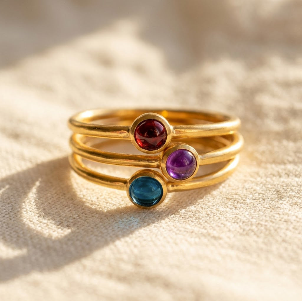 Softly luminous and effortlessly elegant, this cabochon opalite ring brings a delicate glow to your everyday jewelry collection. Set in a refined gold bezel, the smooth oval stone catches the light with an opalescent shimmer, creating a timeless piece that feels both minimal and meaningful.