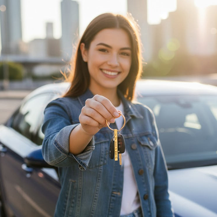 MARK LIFE'S MOMENTS with our personalized keychain—a polished 3D bar engraved on up to four sides with names, dates, or GPS coordinates. Crafted in durable stainless steel finishes (silver, gold, rose, black, rainbow), this modern keyring is a meaningful everyday carry for him or her. Gift-ready and made in the USA, it’s perfect for anniversaries, new drivers, long-distance love, graduates, dads, and groomsmen.