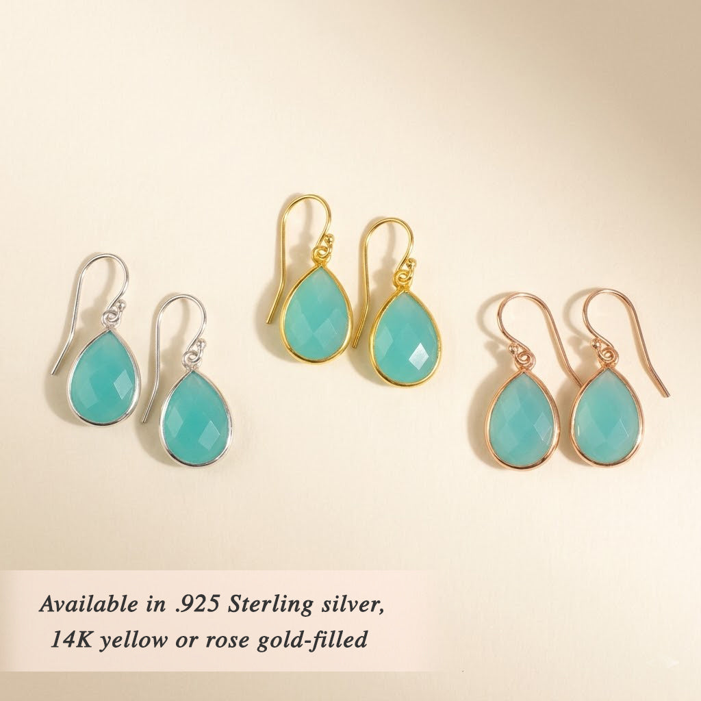 Aqua Chalcedony Earrings in Gold or Silver