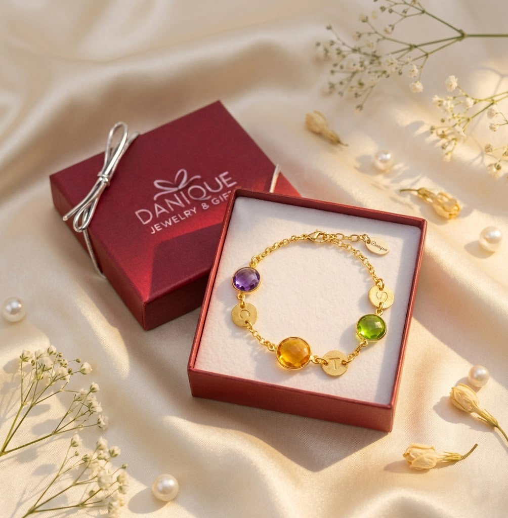 Celebrate the people who matter most with a personalized birthstone bracelet designed just for her. This elegant bracelet features vibrant gemstones paired with engraved initial charms, creating a meaningful piece that represents children, grandchildren, or loved ones in a beautifully wearable design.