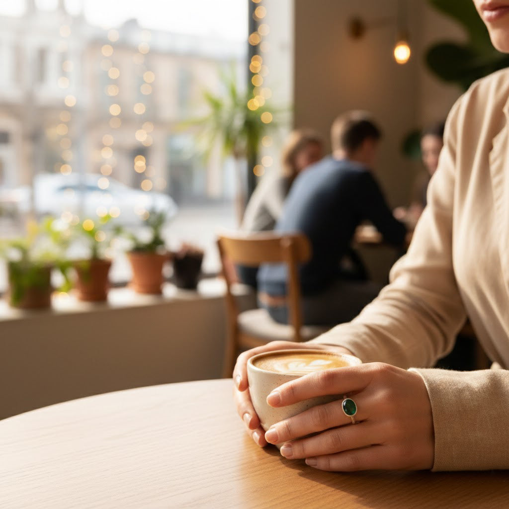 Celebrate May with our oval emerald quartz ring, bezel set for a clean, modern glow. Handcrafted in sterling silver or luxurious gold vermeil, this stackable birthstone ring shines vivid green and slips effortlessly into everyday or dress-up looks. Thoughtful for birthdays, anniversaries, or “just because,” it’s a meaningful gift for moms, partners, and best friends—available in sizes 5–10 for the perfect fit.