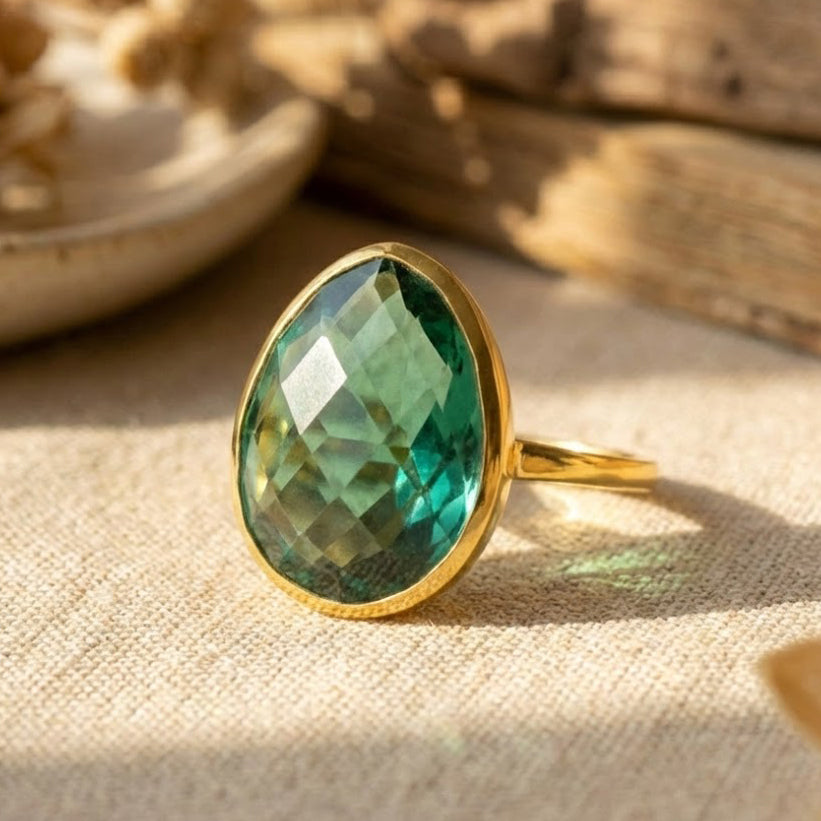 Make a statement with our Green Tourmaline Ring — a modern oval bezel set gemstone ring designed to stand out while remaining effortlessly wearable. Featuring a faceted deep green tourmaline, this piece captures light beautifully and brings vibrant sophistication to everyday styling.