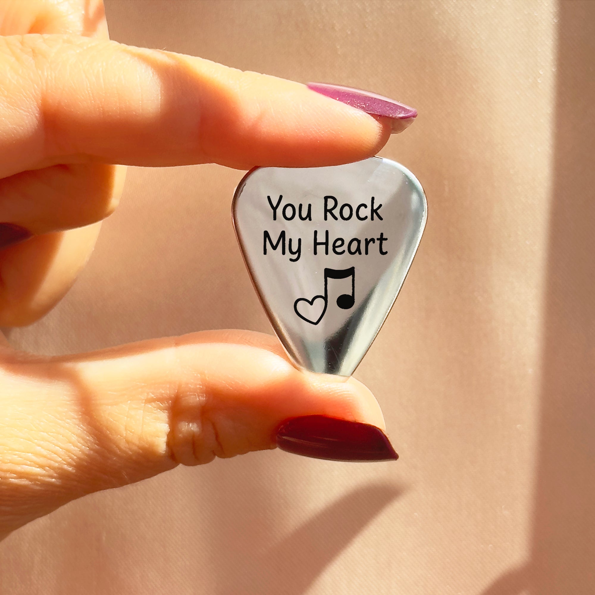 CELEBRATE MUSIC AND MEMORIES with our personalized guitar pick, custom engraved in durable stainless steel. Whether it’s for a dad, partner, or best friend, this unique keepsake can feature names, dates, handwriting, or special phrases. A heartfelt musician’s gift for birthdays, anniversaries, weddings, Father’s Day, or just because, this custom guitar pick is both practical and deeply meaningful.