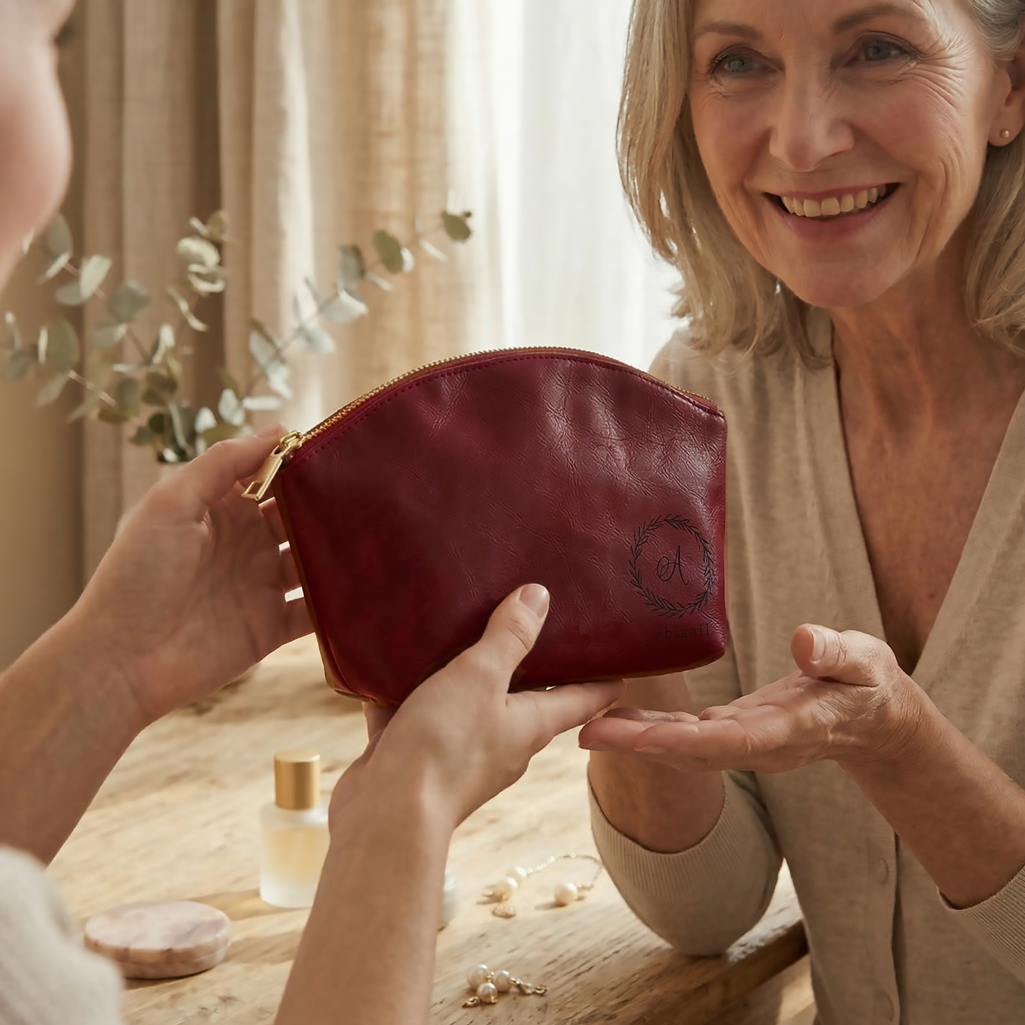 Personalized Leather Makeup Bag – Custom Engraved Cosmetic Bag for Women